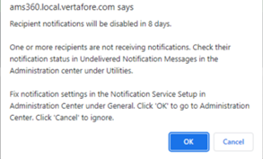 The message displays the details as to how many days remain before a notification recipient will be disabled, should notifications continue to be blocked for the recipient.