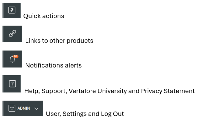The Global Navigation bar is designed to give users an improved experience when working with Vertafore products.