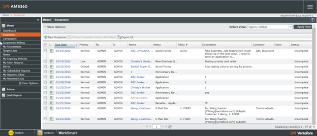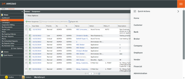 In all previous releases, the AMS360 top navigation bar had a traditional look and user experience. The NEW top navigation bar is slimmer and more modern. It feels the same but better, with the same functionality as before, but much more. All Vertafore products will share this new look and feel.