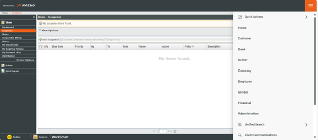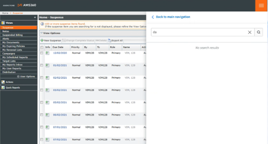 For AMS360 users who are VSSO-enabled and provisioned for AgencyOne, a button-activated Unified Search function is now available. This enhancement improves navigation efficiency and the user experience, making it easier for users to access and manage client information across multiple systems.