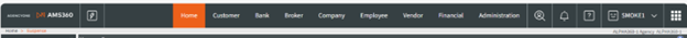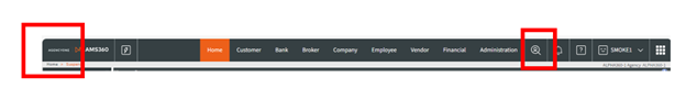 Step 4: As verification, the AMS360 home page should pop up with the Agency One logo in the corner, as well as the updated navigation bar. Unified Search will be indicated by the Spyglass icon.