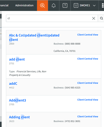 However, if an AgencyOne user is an Admin user but does not have access to the dashboard, that user will be unable to use the unified search.