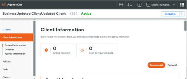 Clicking the Client Central View will lead back to the AgencyOne page