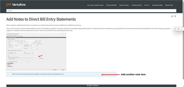 Add Notes to Direct Bill Entry Statements