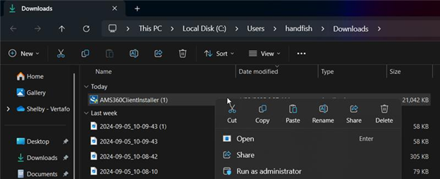 Right-click on AMS360ClientInstallerRev13, and click Run as Administrator.