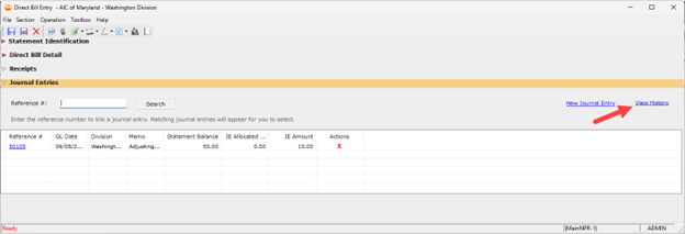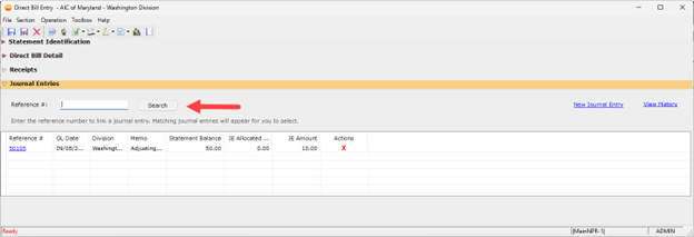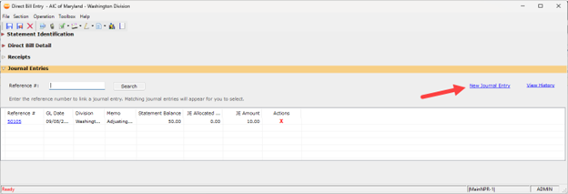 Once a direct bill entry statement is created *, a new journal entry section is available under the direct bill detail section.