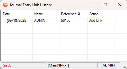 | Reference # | The reference number of the linked journal entry. Clicking this link will open the journal entry detail view. |