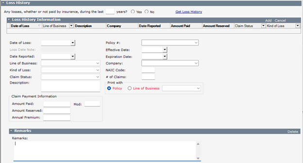 EMS/API Policy Loss History (for PL Rating)