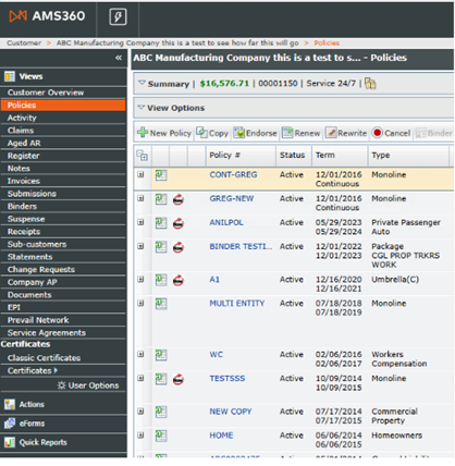 Authorized Agency One users can navigate to the customer center as before, where they will now see an option labeled "Certificates." Click here to view the Agency One Help page in reference to Certificates. After clicking, users are provided with two options. One is the classic version, while the other is the new version. Agency One users will see the below options within AMS360.
