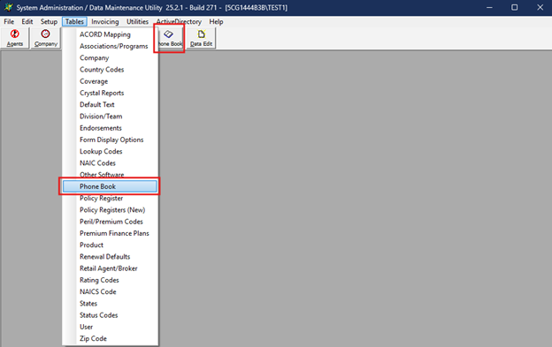 - On the Tables menu, click Phone Book. Alternatively, you can click the Phone Book button on the speed bar.