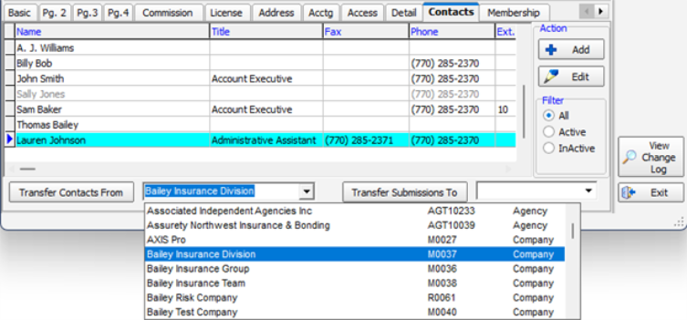 NOTE: The contact being transferred will also remain as an inactive contact from the agency frm which it was transferred: