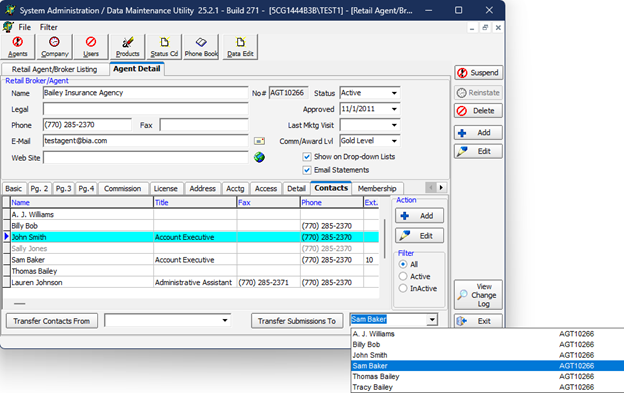 Transfer contacts from the selected agent/broker |