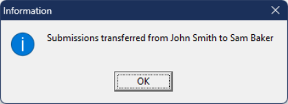 - Click Transfer Submissions To to complete the transfer.