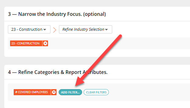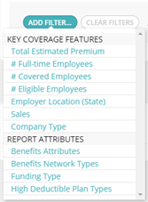 Finally, you can add filters to Refine Categories & Report Attributes. Click on Add Filter and choose options from either Key Coverage Features or Report Attributes. When you are finished adding filters, click Generate Benchmark Report.
