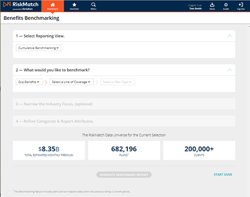 Within the Cumulative Benchmarking reporting view of Benefits Benchmarking, users can now benchmark against existing clients in addition to a plan type.