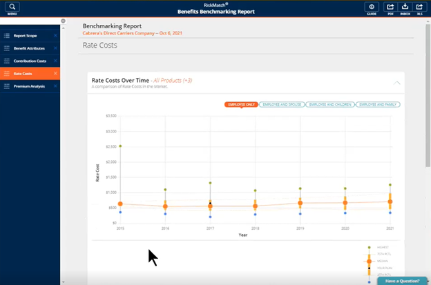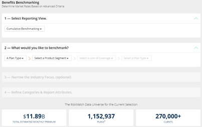 RiskMatch: Benefits Benchmarking provides employee benefits analytics and benchmarking, leveraging hundreds of thousands of plans in the BenefitPoint RiskMatch data pool. It provides Cumulative and Multi-Category Benchmarking data to support renewal and new client engagements so that employers get a clear picture of the competitiveness and cost effectiveness of their benefits packages.