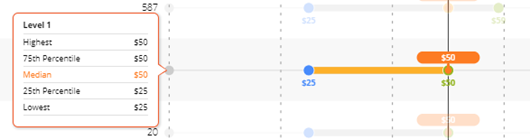 The highlighted $50 on the graph below is the median percentile of the report.
