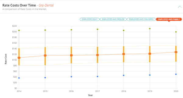 This report shows a year over year view of the various rates that the different rate tiers cost. This will show the overall costs of the benefits plan as rates are the cost per benefit group for the insurance coverage.