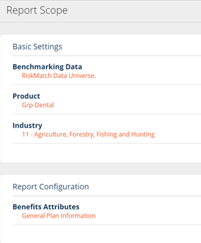 The Report Scope page provides an overview of the options selected in the previous steps to generate the Benchmark Report.