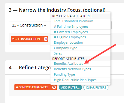 Select, from the pop-up, Benefits Attributes under "Add Filter".