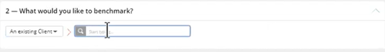 Under the What would you like to benchmark? section, select An Existing Client and type the client’s name in the search box. A number of clients will show, choose the correct client.