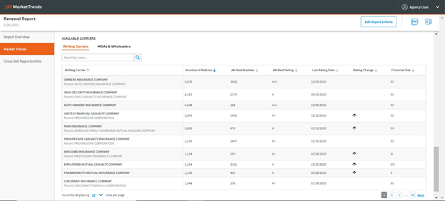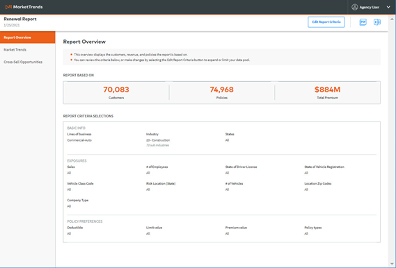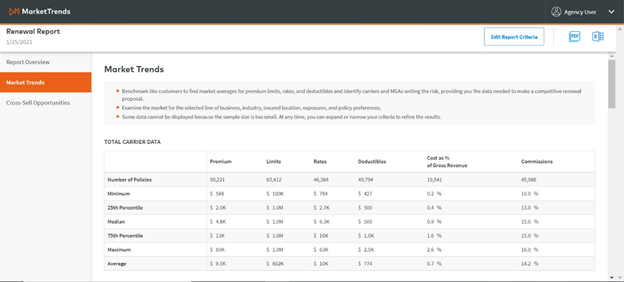 Be sure to refine the report criteria to view MarketTrends for the selected policy and client demographics.