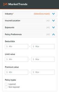 - Policy Preferences – This includes the following policy-specific filters: Deductible, Limit value, Premium value, and Policy types