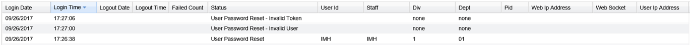 - User ID, Staff Code, Division Code, Department Number, and status User Password Reset