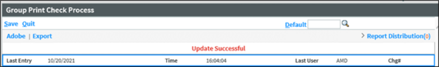 The same batch programs will display Update Successful at the top of the page to indicate the process has updated the checks without displaying prompts.