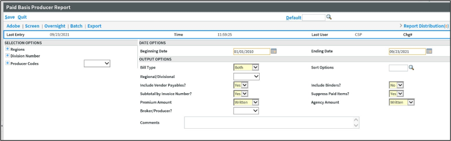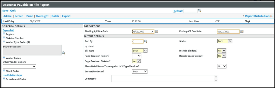 When the Broker/Producer? field is set to Broker, the report will include PRD-type vendors that have the Broker? drop-down set to Yes.