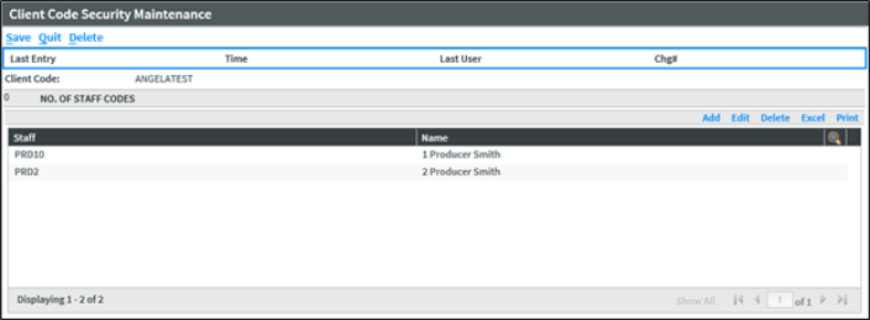 SAGITTA PAGES WITH CLIENT CODE OR BILL-TO-CODE FIELDS THAT ARE CONTROLLED BY STAFF SECURITY DEPARTMENT