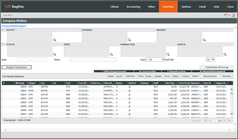 Policy match page that displays when exporting from PLRating and ProducerPlus Match